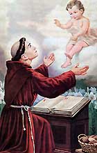 ![]() El día que murió San Antonio, los niños salieron gritando por las calles "¡ha muerto el santo, ha muerto el santo!". Desde entonces, todas las familias cristianas adoptaron la tradición de consagrar a sus hijos al Santo de Padua, para que él los proteja durante toda su vida de los peligros de alma y cuerpo y les preserve su pureza e inocencia. Todos los años en las iglesias franciscanas se lleva a cabo esta hermosa devoción cada 13 de junio, reuniendo a miles de devotos de San Antonio, vistiendo a los niños con el hábito, para que los bendiga y consagre por medio del sacerdote, que suele utilizar esta fórmula, la cual también puede utilizar en casa uno mismo: V)