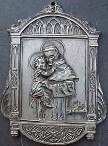 La Cruz de San Antonio Esta insignia la usan los asociados a la Pía Unión de San Antonio, consiste en una elegante Cruz española de San Fernando y ostenta por el centro del anverso la imagen de San Antonio con el Niño Jesús en el brazo izquierdo y en el derecho una rama de azucena, que simboliza la pureza. En el reverso de la Cruz se ve grabado el conocido Breve de San Antonio. Los lirios de San Antonio Son cuatro los emblemas antonianos: Los lirios o azucenas, emblema de la castidad y la juventud; los Santos Evangelios, emblema de la sabiduría como Doctor Evangélico, martillo de los herejes y Arca del Testamento; el Niño Jesús en brazos de San Antonio, que hizo de San Antonio el Santo de los milagros, el Santo de todo el mundo; y el pan de San Antonio, del cual se alimentan los pobres del mundo entero. La azucena es símbolo de la pureza. A San Antonio se le representa las más de las veces con un lirio en la mano y al Niño Dios en el otro brazo, lo que significa que el Santo de Padua mereció, por su pureza, las apariciones y ternuras del Niño Jesús y que es modelo de inocencia y poderoso abogado defensor de estas encomiables virtudes. Los lirios de San Antonio son una prenda de esta tutela. Merced a la bendición solemne que reciben de la Iglesia, tienen el poder eficaz de ahuyentar al demonio de la impureza, curar las enfermedades y alcanzar la paz y la gracia, a condición de poseerlos con devoción. Los panecillos de San Antonio Es tradición popular que en el día de la fiesta de San Antonio, se bendigan los panecillos colocados en canastillas sobre el altar, lo cual se suele hacer después de la Misa. Las gentes acuden devotamente a recibir este pan y es costumbre entregarlos más tarde gratuitamente a quienes acuden o a instituciones benéficas, llenando de bendición de San Antonio, la mesa de los devotos en su día. + R.A.S.A. Los muy devotos de San Antonio, tienen por costumbre al escribir sus cartas, añadir unas iniciales en honor a San Antonio, para que la misiva no se extravíe y sea bendecida, bendiciendo a su vez a quienes la escriben y a quienes la reciben. Muchos milagros se han producido con estas cuatro iniciales, cartas que aparecen después de haberse perdido casi ya irremediablemente, o las que llegan a lugares remotos, donde ni siquiera hay servicio de correos, o que por error se enviaron con direcciones incorrectas que llegan al lugar correcto o las que llegan en tiempo brevísimo. Así pues, San Antonio ha oficiado de cartero divino de sus devotos. Las iniciales R.A.S.A. significan ni más ni menos que: Recomendada A San Antonio. Breve de San Antonio Radica en un milagro que San Antonio hizo en una mujer que estaba a punto de suicidarse. La razón de su suicidio radicaba en su erróneo pensamiento de que, por su vida y pecados era inmerecedora del perdón de Dios, así que sacrificaba su vida como ofrenda, arrojándose al río. Al pasar cerca de una Iglesia franciscana, antes de perpetrar semejante ofensa a Dios, entró a despedirse del Santo de Padua, a quien le tenía gran devoción, para darle su último adiós. San Antonio se le apareció para persuadirla de su engaño y le entregó un pergamino, que al colgarlo de su cuello de inmediato le libró de las asechanzas del demonio, en el cual se leía este breve: "He aquí la Cruz del Señor; huid todos mis enemigos. Ha triunfado el León de Judá, la Raíz de David. ¡Aleluya, Aleluya!" ![]() Oración para recibir la imagen del Santo ¡Gloriosísimo San Antonio que, lleno de inefable bondad os dignáis visitar esta casa y familia! Postrados a vuestras plantas humildemente reconocemos el inmerecido honor que nos dispensáis, porque vuestra visita será de paz y consuelo para todos vuestros devotos. Nos enseñaréis lo que debemos hacer para mejor agradar a Dios, cumpliendo fielmente con nuestros respectivos deberes y nosotros aprenderemos vuestras celestiales enseñanzas. Frecuentaremos más vuestros Santo Sacramentos y despreciaremos el miedo al ridículo, que tantos daños espirituales nos acarrean y seremos luz del mundo con nuestro comportamiento edificante. Interceded con ese Divino Niño Dios que tenéis en vuestros brazos, con la Inmaculada Virgen María y el glorioso San José para que bendigan este hogar y derramen sobre él los tesoros del cielo, para que esta familia imite a aquella otra de Nazaret en la conformidad con la Voluntad del Señor y en todas las demás virtudes que en ella resplandecieron. Amén. Se puede honrar a San Antonio con sus oraciones o meditaciones, con su Rosario o su novena, con la consagración a niños y adultos, bendición de los panes en la comida y bendición de la casa y enseres o con ofrendas florales, según la costumbre de cada lugar o familia. Al terminar la visita se reza la: Oración para despedir la imagen del Santo ¡Amadísimo protector nuestro San Antonio! Nuevamente congregados a vuestras plantas os damos expresivas gracias por haberos dignado permanecer entre nosotros durante este día. Nunca olvidaremos las lecciones que nos habéis dado y los buenos propósitos que os hemos ofrecido Antes de abandonar esta morada, os suplicamos fervorosamente que socorráis a todos los que os invocan, a todos los que sufren abandonos y desamparos, persecuciones, injusticias o calumnias, a los que sufren en su cuerpo o en su espíritu, a los que tienen hambre y viven en noche perpetua a causa de su rudo padecer. Os rogamos también que llaméis dulcemente a todos los que viven olvidados de su santificación y que nos alcancéis del Divino Niño el remedio de todas nuestras necesidades espirituales y temporales; que toda la tierra sea renovada y todos los corazones reconozcan el reinado absoluto de Cristo y todas las lenguas confiesen que no hay salvación fuera de sus doctrinas y enseñanzas por su Santa Iglesia y predicadas por sus ministros. Bendecidnos a todos y alcanzadnos el don inestimable de la paz. Así sea.